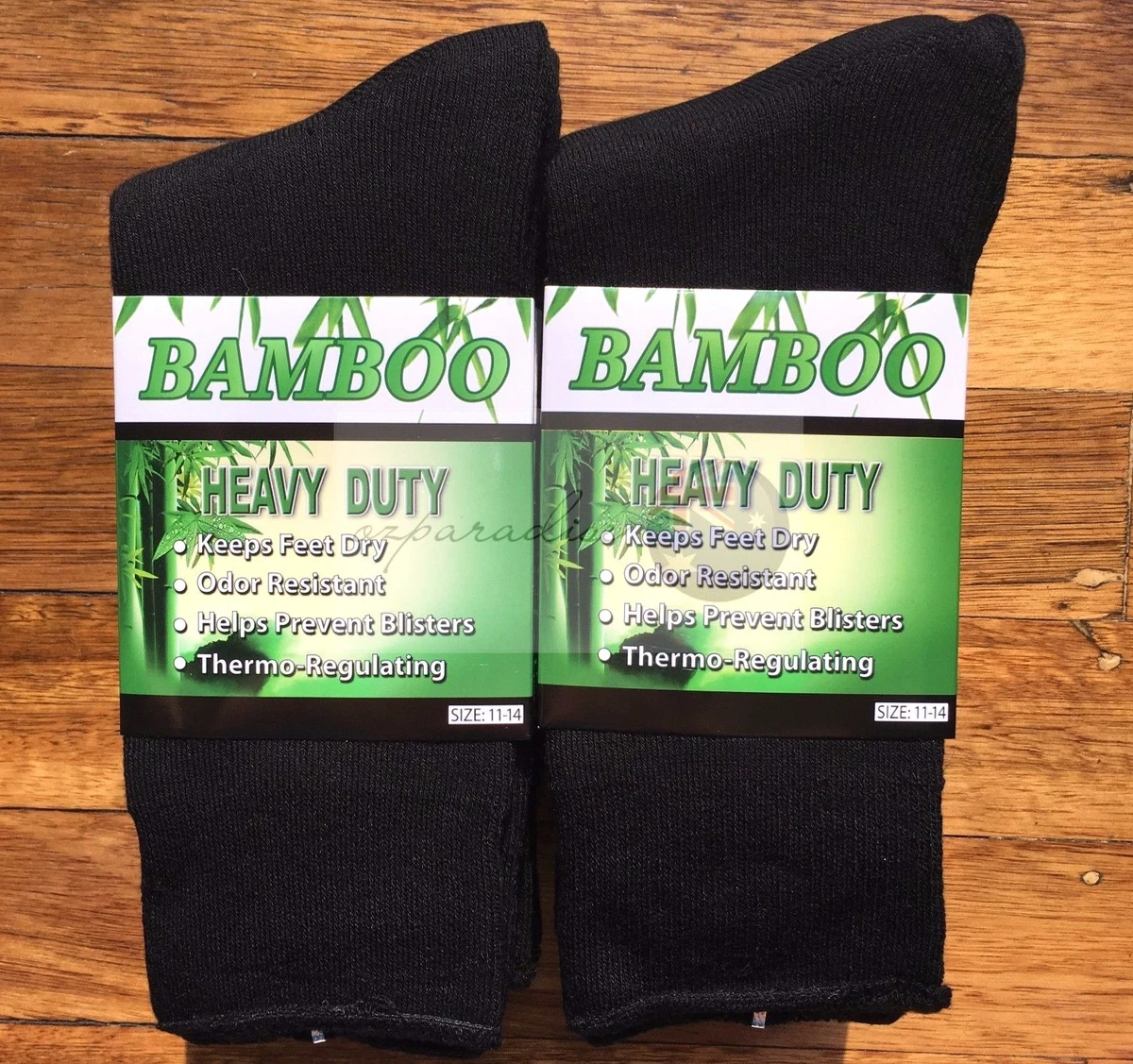 6 Pairs Size 11 14 98 Bamboo Socks Men S Heavy Duty Premium Thick Work Black Ebay